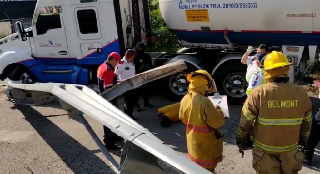 La unidad de carga tipo pipa de doble remolque que transportaba Gas L.P. cuenta con placas de circulación del Servicio Público Federal (SPF), por lo que no forma parte del padrón vehicular estatal con el que cuenta la SMyT.