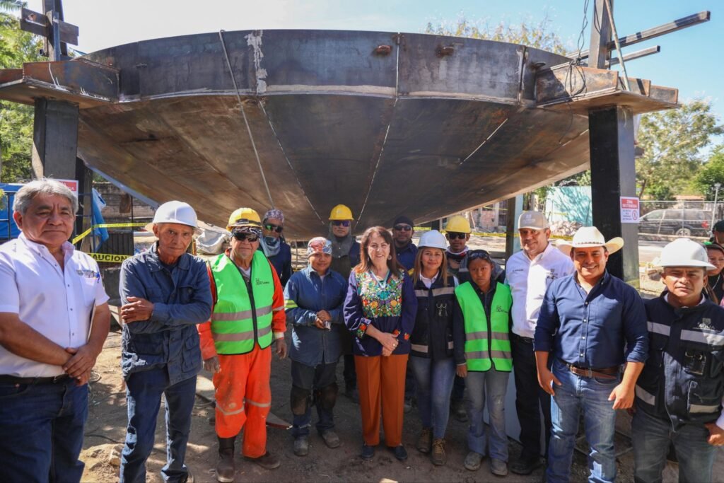 Posteriormente, Margarita González Saravia supervisó la construcción del tanque elevado de acero “La Bola”, obra estratégica que garantizará el suministro de agua potable a nueve mil 542 habitantes de la cabecera municipal de Axochiapan.