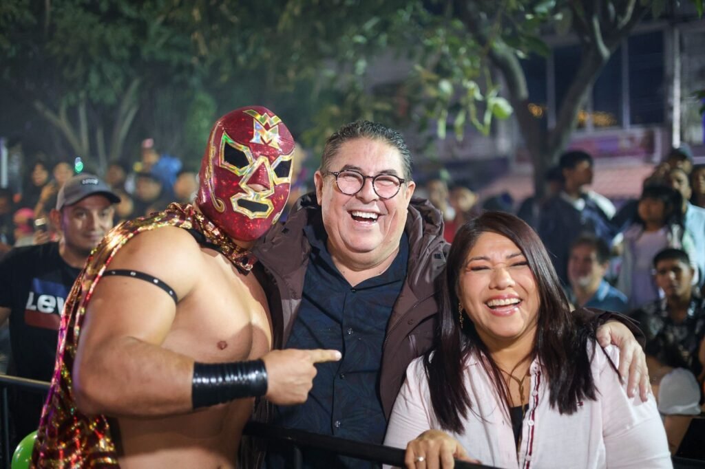 El senador de la República por Morelos, Víctor Mercado Salgado, asistió a una función de Lucha Libre con la diputada federal por Morena Ariadna Barrera, donde convivió con vecinas y vecinos de la comunidad de Tejalpa en el municipio de Jiutepec, el ambiente fue sana convivencia y entusiasmo deportivo.